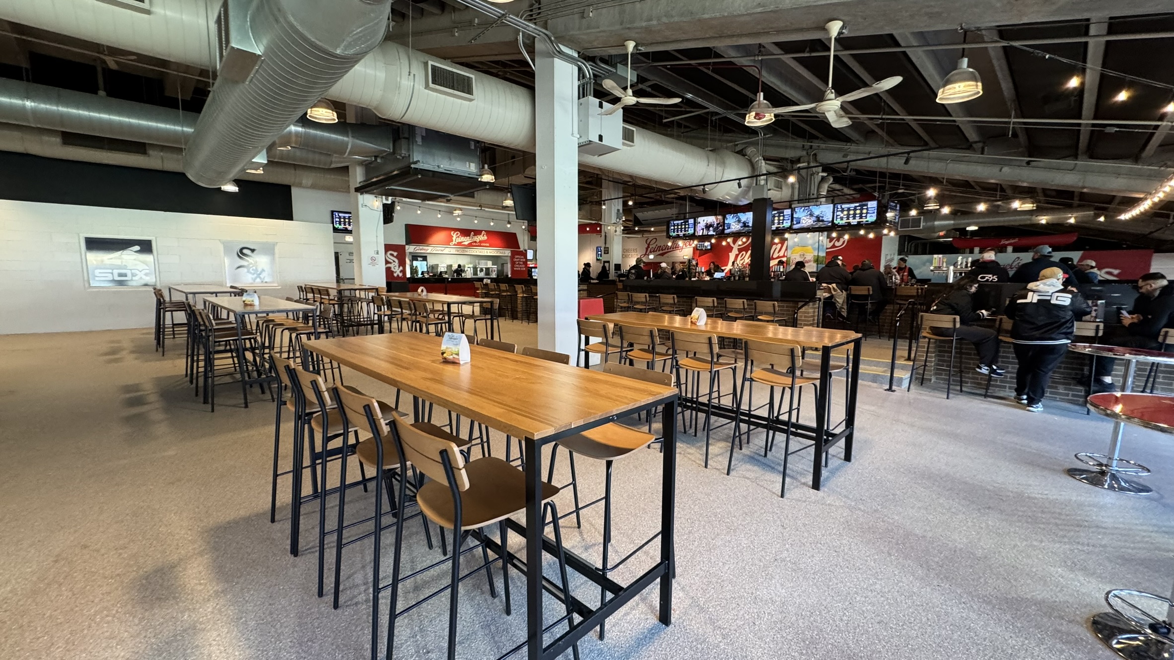 If you walk onto the outside patio, there used to be general admission high-top chairs, but the Sox removed those, so now it’s just an SRO spot. To be honest, we think this is better — the seats and SRO didn’t coexist well, so this gives more people space to hang out. The patio is covered by the awning from the 300 Level, but, honestly, it’s a bit dark under there because the awning is so low. But for an inning or two, it’s a decent place to watch the game if you’d like a little shade.